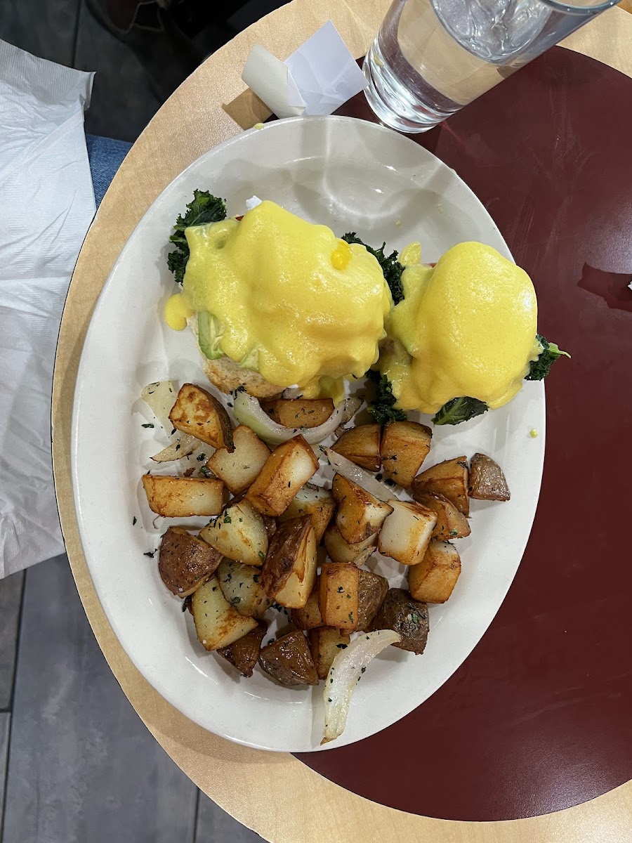 As you step inside, you'll be greeted by the warm, inviting vibe that envelops the space, accompanied by the tantalizing aroma of freshly brewed coffee. With ample seating options both indoors and on the patio, you'll find a spot that suits your mood, whether you're dining solo or gathering with friends.